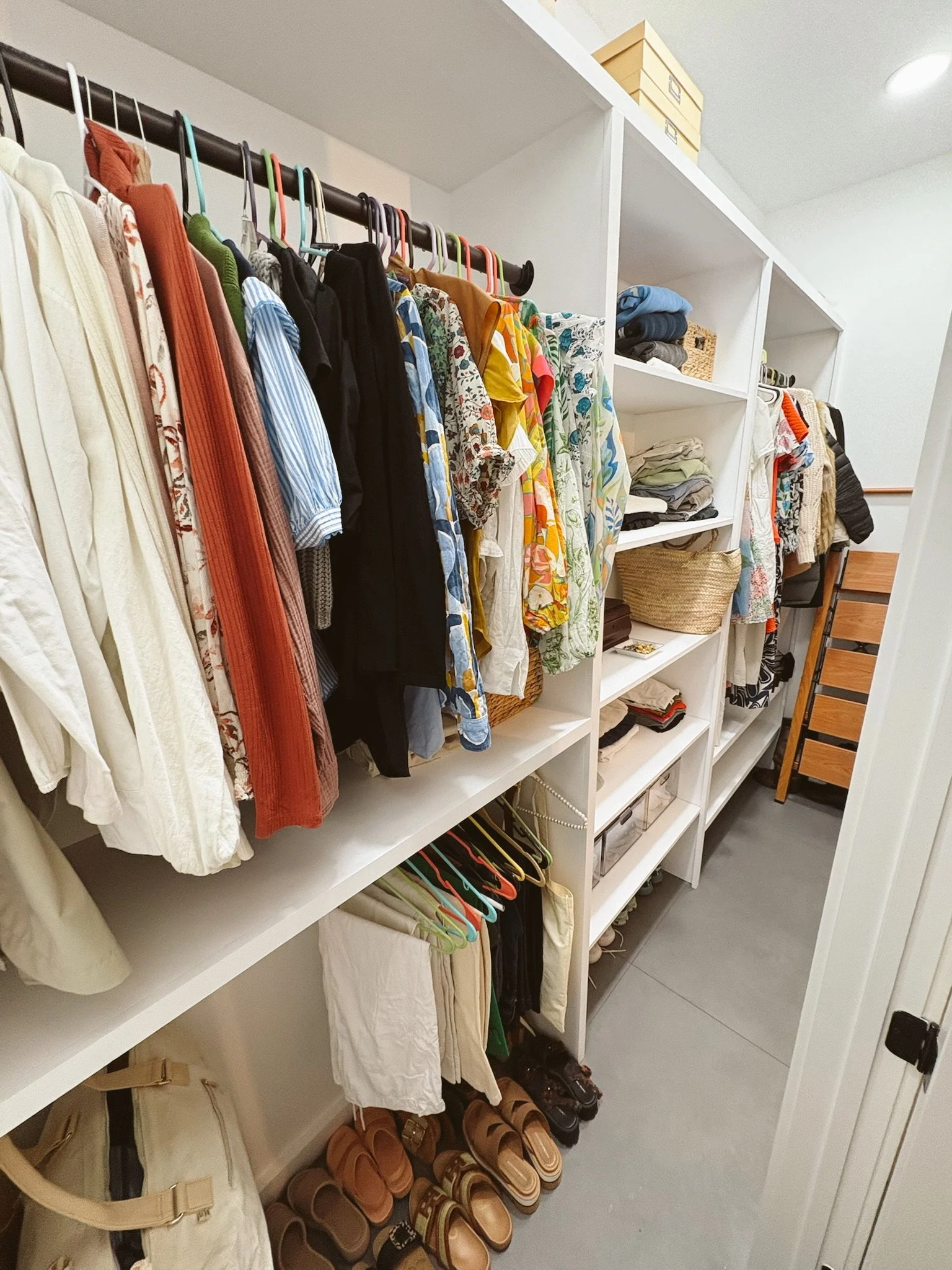 Replace closet with wardrobe items in an orderly, functional, and systematic manor.